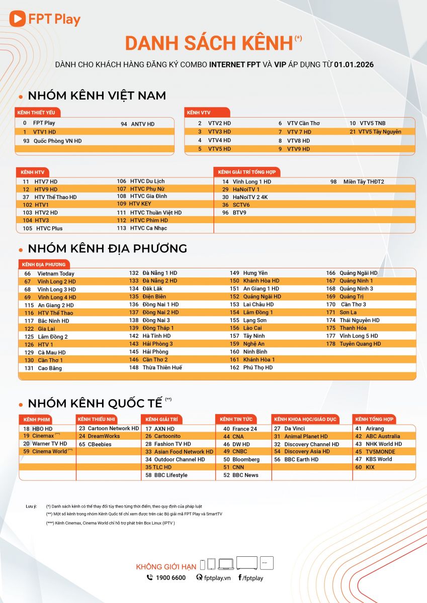 ** TẬN HƯỞNG ĐẦY ĐỦ CÁC GIẢI BÓNG ĐÁ HÀNG ĐẦU CHÂU ÂU NHƯ NGOẠI HẠNG ANH, Đức Pháp Tây Ban Nha, C1, CÁC PHIM BOM TẤN CỦA Hollywood, CÁC GIẢI TENNIS, GOLF NỔI BẬT, VÕ ĐÀI BÁT GIÁC, ĐUA XE CÔNG THỨ F1 VÀ CHƯƠNG TRÌNH CA NHẠC, THỜI TRANG ĐẶC SẮC - SẮC NÉT NHẤT CHỈ CÓ TRÊN TRUYỀN HÌNH FPT